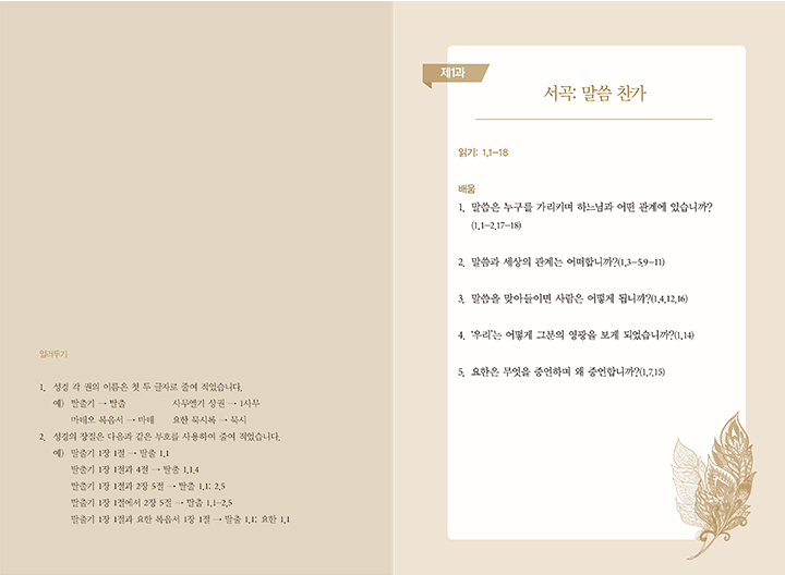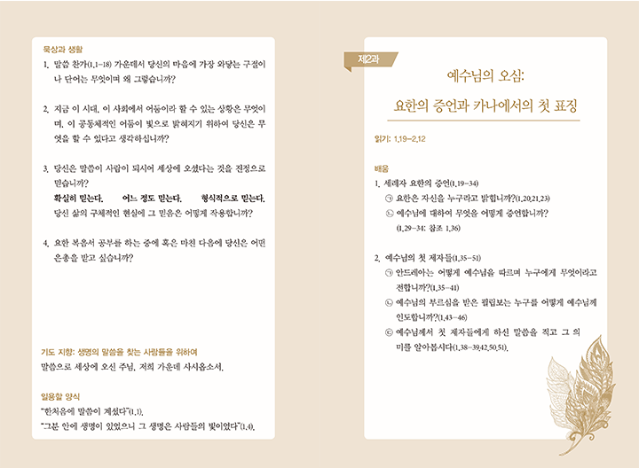 가톨릭성서모임에서 시행하는 요한복음 그룹 성서공부의 문제집.