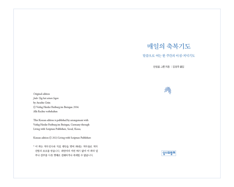 매일의 축복기도는 기도를 어려워하는 모든분들에게 정말 중요한 책인거같아요.